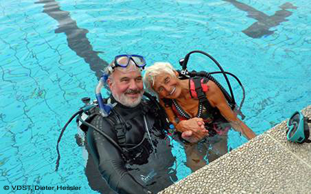 „Das hat richtig Spaß gemacht – das war toll!“, kam es hellauf begeistert von Irene, als sie von ihrem ersten Schnuppertauchgang zurück ist. Irene ist 75 Jahre alt und war am Wochenende einer von bundesweit rund 6.500 Gästen des diesjährigen Tauchertages des Verbandes Deutscher Sporttaucher (VDST). Dabei machte der VDST gemeinsam mit seinen Tauchsportvereinen in ganz Deutschland das Sporttauchen mit den vielfältigen Erlebnismöglichkeiten auch für jene zugänglich, die noch nie Tauchen waren, es aber "schon immer mal" probieren wollten. So auch für Irene, die in ihrem Heimatort Bad Breisig den Tauchverein besuchte. Insgesamt boten über 100 engagierte VDST-Tauchsportvereine am Wochenende besondere Mitmachaktionen an. Trotz des durchwachsenen Wetters begeisterte der Tauchertag 2015 rund 6.500 Teilnehmer im ganzen Bundesgebiet.