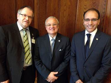 Anlässlich des Besuches des ägyptischen Präsidenten, Mohammed Mursi, fand gestern im Bundesministerium für Wirtschaft und Technologie (BMWi) die erste Sitzung der Deutsch-Ägyptischen Gemischten Wirtschaftskommission (GWK) in Berlin statt. Mit der Gründung der GWK soll ein festes Forum eingerichtet werden, in dem sich Regierungs- und Wirtschaftsvertreter über eine stärkere Zusammenarbeit und konkrete Projekte austauschen können. Eines der Schwerpunkt-Themen hierbei ist auch der Tourismus. Als einer der Verbandsvertreter von deutscher Seite nimmt Prof. Franz Brümmer, Präsident des Verbandes Deutscher Sporttaucher e.V. (VDST) als Mitglied der deutschen Delegation, an dieser Gründungssitzung der GWK teil. Dabei traf er sich mit Mohamed Hisham Abbas Zaazou, Ägyptens Tourismusminister und Mohamed Gamal, Generaldirektor des ägyptischen Fremdenverkehrsamtes in Deutschland.