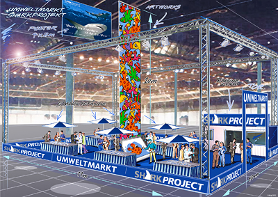 Offenbach a. M.: Im Rahmen der internationalen Messe „Boot 2013“ in Düsseldorf entsteht zwischen dem 19. und dem 27. Januar 2013 auf dem Messestand einer der weltweit größten Haischutzorganisationen, Sharkproject International, Deutschlands größtes Umweltgemälde. Zwei bekannte Künstler gestalten jeweils ein 6 Meter hohes und 2,20 m breites Gemälde.