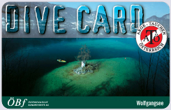 Mit dem Kauf der DIVE CARD unterstützen Taucher das ständige Bemühen der ARGE TAUCHEN ÖSTERREICH um ein zwar organisiertes aber freies Tauchen in Österreich zu sichern. Damit erwirbt jeder Sporttaucher die Tauchberechtigung für erlebnisreiche, österreichische Seen. Die DIVE CARD kostet € 15,-- und hat eine Gültigkeit von 12 Monaten