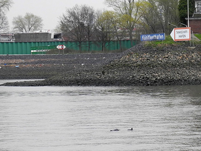 So viele Schweinswal-Sichtungsmeldungen aus Weser und Elbe wie dieses Jahr erhielt die Gesellschaft zur Rettung der Delphine (GRD) noch nie. Besonders in der Elbe werden bereits seit Anfang April Gruppen von 2, 4 und bis zu 10 Tieren gemeldet. Fast täglich werden sie von Anwohnern, Fährfahrern oder aus Büros bei Airbus gesehen. Sogar aus dem Wohnzimmer eines Hauses in Övelgönne konnten ein Vater und seine Tochter die Kleinen Tümmler genau beobachten.