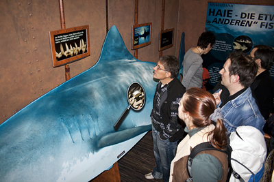 Dazwischen gibt es viele spannend verpackte Hai-Informationen, viele Filme, Modelle und Bilder. MS HAITANIC, die für 4 Monate im drittgrößten deutschen Museum gastiert, ist eine Ausstellung der ganz besonderen Art, die man/frau sich auf keinen Fall entgehen lassen sollte.