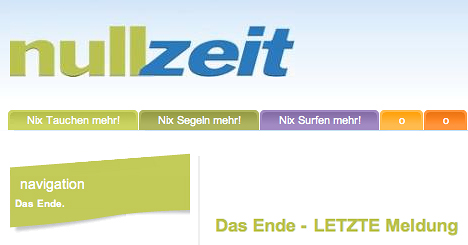 Über 5.500 Meldungen aus den Bereichen Tauchen, Segeln und Surfen haben wir in den letzten 13 Jahre teilweise überaus erfolgreiche! geschrieben und veröffentlicht. Doch irgendwann ist für ein nebenberufliches Projekt (alle Redakteure von nullzeit.at sind ja hauptberuflich in anderen Unternehmen tätig) auch einmal die Luft raus. "Diesen Punkt haben wir jetzt erreicht", sagt Leo Ochsenknecht ehemaliger Chefredakteur von nullzeit.at dazu.