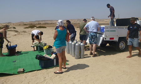 Als erstes bekommt man - nach den üblichen Formalitäten - eine Box-Nummer und ein verschließbares Fach zugewiesen, dann ist ein Checkdive notwendig - kennt man ja.